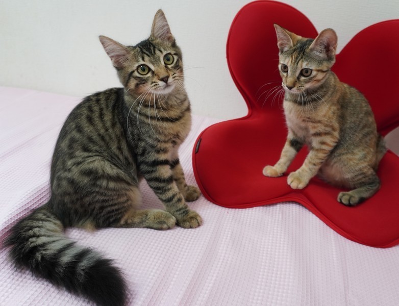 | 特徴(性格など) | 【仮名】リッチちゃん 【性格】写真の通りメチャクチャゴージャスなリッチちゃん♪ 夏毛という事で、最近はややスッキリしてます(^-^; 最初は逃げ惑う仔ですが、一緒に暮らす中で少しずつ慣れてくるタイプです。 猫じゃらしで遊ぶ時は、お世話の者のお膝にも乗ってくれます☆多分、夢中で気づいてないだけ(笑) 食いしん坊で、陽気な雰囲気をかもしているので、いっぱい遊んで、おやつをあげて、 一緒に暮らしていく中で人馴れしていくことでしょう♪ 里親様の愛情で、ナデナデや抱っこが出来る仔にして頂けると嬉しいです(>_<) 譲渡会までには、もう一歩、成長した姿をお見せします(笑) リッチちゃんのペースで慣れるのを待って下さる里親様に託したいと思います☆ ※トイレは拘ります。綺麗な状態が好みです。汚れていると使いません。 ※環境によっては1匹譲渡も視野には入れておりましたが、ここ数日様子をみていると、 姉妹のクララちゃんと一緒に過ごした方が、穏やかに、楽しく過ごせるようです。 なので、クララちゃんとお迎え頂だけると嬉しいです。 |