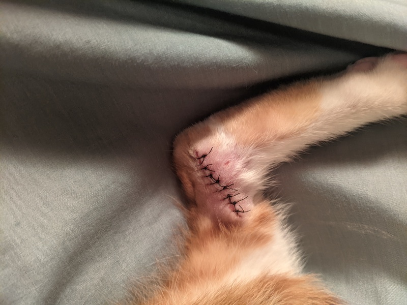 | 特徴(性格など) | 里親募集者は仙台市内で愛猫団体を運営しております 6月21日、市内の方から 『足に怪我をしていると思われる野良の子猫が、数日間庭先でほとんど動けなくなっており衰弱している様子、何とか助けてほしい』との連絡を受け ⇒同日中に緊急保護いたしました 捕獲時それなりに逃げ回るくらいの気力は見られたものの 右足内側〜くるぶしの当りに骨が露出するほどの裂傷、腹部にも複数の切り傷?〜衰弱が見られたため 即⇒最寄りの動物病院さんにて、レントゲン撮影 消毒や縫合〜抗生剤投与などの緊急処置+ノミダニ駆除を致しました 怪我の原因はドクターも 『車に轢かれたような傷とも見えないが判りかねる』との事でした ↓ まずは当方で一時保護し、経過観察いたしましたが傷の状態が思わしくなく 25日⇒別の動物病院さんにて再度レントゲン撮影、再縫合手術〜投薬 ※ウイルス検査(全て陰性) ※寄生虫の検査(陰性) 27日⇒経過の診察、消毒など 現在も治療中ですが、経過は良好で骨自体には損傷がないとの事で このまま順調に回復した際に、後遺症などの残る可能性は少ないはずとの診断を受けています まだ少し足取りはぎこちないですが、走れますし ある程度のジャンプなども出来るほどに回復しています 抜糸は7月3周目あたりを予定しております ※生後3ヶ月弱(ドクター推察) ※体重1.3キログラム ※男の子〜まだ幼齢のため、去勢手術は行っていません ※性格は活発、比較的よく鳴きます 捕獲時幼かったこともあり、すでに人馴れできております ※尻尾まっすぐ ※寂しがりなタイプかと感じます、抱っこ好き ※先住ねこのいる環境で保護しておりますが、あまり他のねこを恐れる様子は無いため 既に先住ねこさんがいらっしゃるご家庭など〜多頭飼育でも、比較的すぐに順応できるのでは?と感じています ※トイレトレーニング済み 母親は野良で、未だ捕獲には至っておりませんが 若めで、可愛らしい三毛柄 兄弟猫に真っ白の子を確認しています ご希望でしたらば詳細な捕獲場所や、母猫のお写真などもお送りいたします |