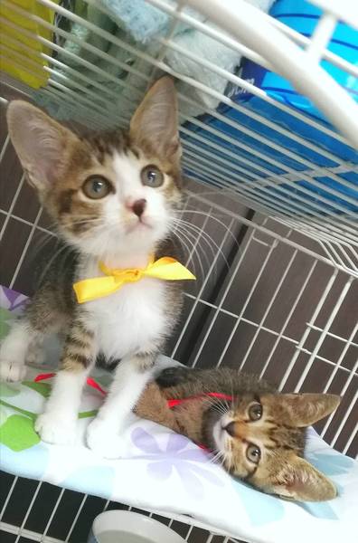| 特徴(性格など) | キジとキジ白の仲良し姉妹です。ヒトの膝の上でくつろぐなど、元気に成長中。 | ||