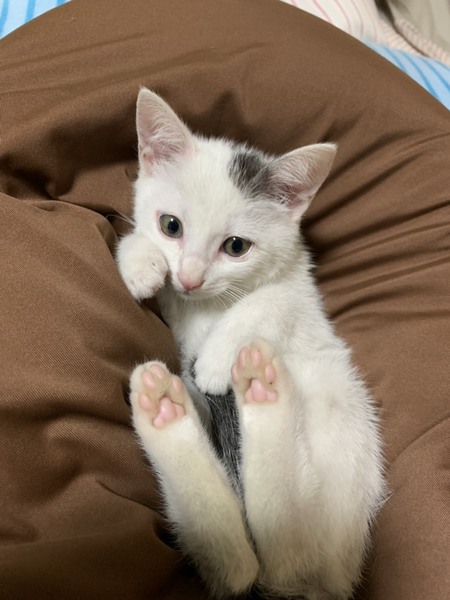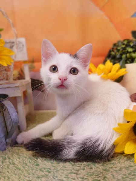 | 特徴(性格など) | 白に黒でポイント柄が可愛いです。 尾の模様もキュートな女の子です。 女の子らしい性格の子です。 少し怖がりな部分もありますが、甘えっ子で抱っこや撫でられるのが好きです。 女の子にしては丸顔なのも可愛く、大きなおめめも素敵です。 |