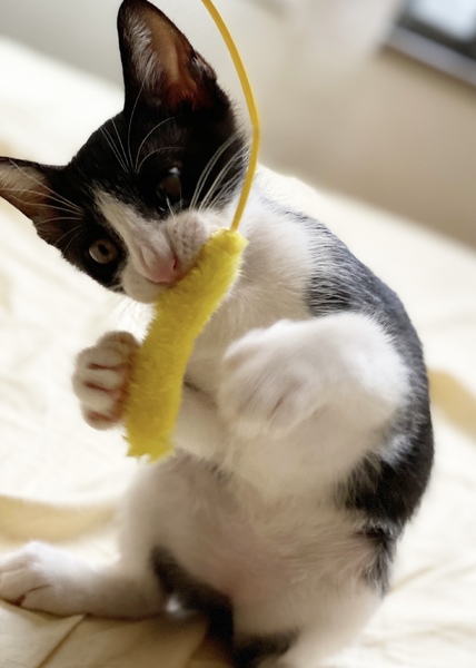 | 特徴(性格など) | 3兄妹で生まれ、推定3日後に愛護センターに持ち込まれて、そのまま授乳専門のボランティアさんのもとで離乳するまで育てられました。 まだ目が開かないうちにボランティアさんから授乳をしてもらっているので、人間がお母さん同然のため、とても人懐っこいです。 めちゃめちゃ甘えん坊で、夜はぺったりくっついて、一緒に寝るのが日課になっています。 おもちゃで遊ぶのも大好き!ご飯を食べるのも大好き!そして、「もっと遊んで!」「おなかすいたよー!」と、自分の欲求は我慢せずにちゃんと鳴いてお知らせしてくれる素直な男の子です。 ずっと兄妹やお友達と一緒に過ごしてきました。とても甘えん坊な性格なので、お留守番がなるべく短いお家や、一緒に遊べる猫さんと一緒の多頭飼育が可能なお家の方からのご応募があれば有り難いです。 |