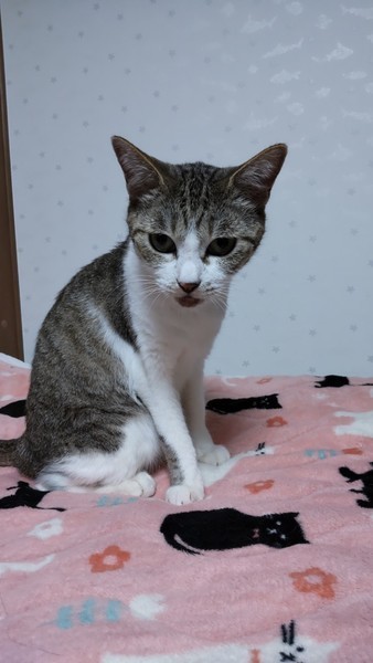 | 特徴(性格など) | おとなしくて人懐っこい子です。人には慣れているのに、猫にはシャーシャーいいます笑 8歳くらいなので歯が何本かないですが、カリカリもよく食べ、元気にしています。 ・去勢手術済み ・ノミダニ便虫駆除済 ・エイズ(−)白血病(−) ・3種混合ワクチン接種済 |