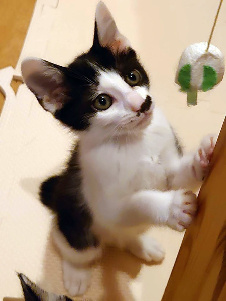 | 特徴(性格など) | 仮名はなちゃん 可愛い白黒の、はちわれさんひげ女子です、甘えん坊さんで遊ぶの大好きですよ。 ワクチン近い内に接種予定です 駆虫中 ノミダニ駆除済み エイズ白血病検査お母さん猫でしてます、共に陰性です。 |