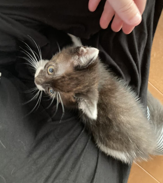 | 特徴(性格など) | 仮名を 幸(こう)君と言います。 「幸せを掴むように」の「幸」を「こう」と読みました。 元気いっぱい遊びざかりの男の子です。 とにかく遊ぶの大好き。 ねこボールなどのおもちゃ大好き。 「遊びたい」の気持ちと同じくらい人が好きで、人馴れ完璧の甘えんぼです。 ドライフードがお気に入りです。 ほぼ黒色の白黒君です。 耳先や、手足、腹など部分的にポイント白になっています。 保護時は猫風邪が酷かったのですが、目薬・飲み薬で完治しました。 7月4日の保護時に獣医さんの見立てでは、1ヶ月過ぎと診断されました。 |