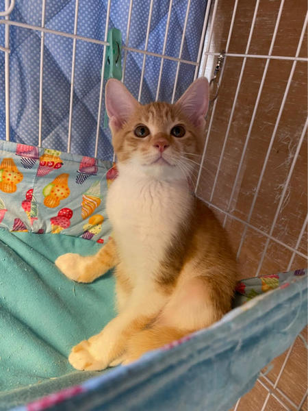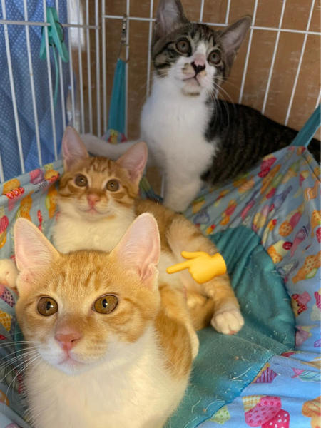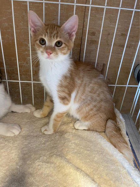 | 特徴(性格など) | 【性格】空き家で産まれた子猫達で、母猫さんはTNR後、地域猫として近隣住民の方に可愛がって貰ってます。子猫達は保護しました。 3匹兄妹の子猫達です。 因みに当たり前ですが、元野良猫の子猫ちゃんです。 保護した当初の様子などはYouTube『ちゅー猫チャンネル』にアップしておりますのでぜひ!ご覧ください。https://youtube.com/channel/UC4YseOceX9CQfZtgXTg83sw 茶トラ白のかわいい女の子です。 三兄妹の中では一番身長派で末っ子タイプです。捕獲する時も最後まで母猫の元から離れずにいた子で、最後の最後に捕獲できた子です。 とにかく遊びが大好きなのでおもちゃに反応します。おもちゃとちゅーるがあれば釣られてしまう所は子猫の単純さです。 びびりちゃんですが、噛んだりひっかいたり猫パンチなどいっさいありません。 抱っこもできますが、あまり好きではないようです。 普段は預かりさん宅のリビングを自由にフリーにしておりますが、夜はケージで寝かせており、ケージ飼いに慣らしてあります。 この子達にとってケージが安全な場所だと思っています。 ですので迎えてくださるご家庭は、必ずケージ飼いからのスタートでお願いします。(完全フリーにするとまだまだ隠れてしまいます。) お届けする頃には、もう4ヶ月になっているので、去勢手術をしてからのお届けとさせていただきます。 避妊手術済みの大きめの子猫となりますから、お仕事を半日ぐらいお待ちのご家庭でも全く問題なく迎えていただけます(譲渡会スタッフにご相談ください) もし?余裕がおありでしたら、お留守番の事を考えると二匹飼いをオススメします。 同じキョウダイの兄じゅんくんとのペアをオススメします(子猫一匹だと人間に依存しますが、二匹飼いだと猫同士で遊びあって成長して行くので、返って飼い主さんは二匹飼いの方が育てるのが楽です) とてもかわいい子達ですので、ぜひ!よろしくお願いします。 |