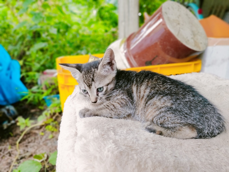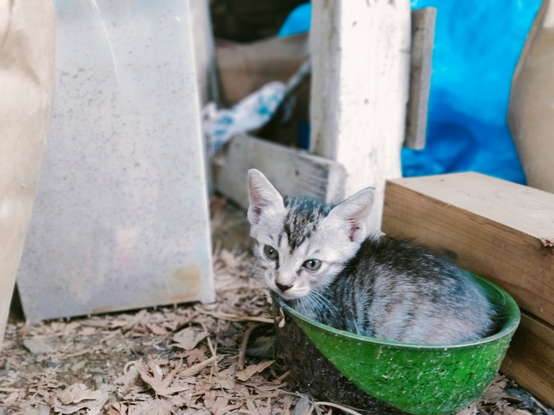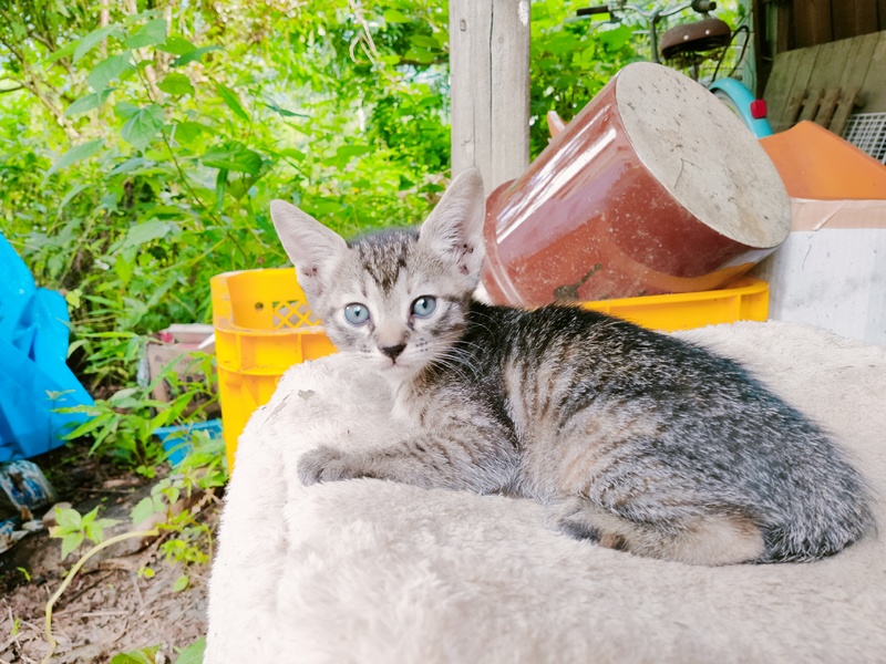 | 特徴(性格など) | 元気なキジトラ♀とサバトラ♀の姉妹です。離乳してドライフードを食べています。 仲良しなので、出来れば一緒に引き取ってもらえると嬉しいです。 どちらか1匹でも可能です。 |