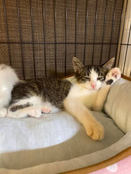 | 特徴(性格など) | ◆こもんくん なでられ好きなキジ白ハチワレ子猫 ●月齢の小さな子猫は、以下の条件についてご了承の上で応募をご検討下さい。 ◆高齢者のみのご家族からの子猫のお申し込みはお断りさせて頂きます。 ◆お留守番の少ないご家庭を希望します。 ◆小さなお子様のいるご家庭は状況によりお断りする場合がございます。 ○栃木県内で保護されました。 ○生後2ヶ月半くらい(2021年8月中旬時点)の、キジ白ハチワレの男の子です。 ○尻尾は長い鍵しっぽです。 ○人が大好きになりました。近くに行くと遊んで遊んでと飛んできます。 ○膝に乗せて撫でるとグルグルうっとりしています。 ○同じく里親募集中の「つむぎ」とは大の仲良しの兄妹です。 ○元気に遊びよく食べてスクスク育っています。 ○結膜炎のため点眼薬で治療中。 ○まだ小さな仔猫のため、お留守番の少ないおうちをお待ちしております。 ★ワクチン1回済み、マイクロチップ挿入済み。 ★猫エイズ、猫白血病ともに陰性。 ★不妊手術は成長と体調をみて実施予定です。 ★結膜炎のため点眼薬で治療中。 ★★Zoomアプリを使用して、リモートお見合いを設定することも可能です。まずはお申込みください★★ |