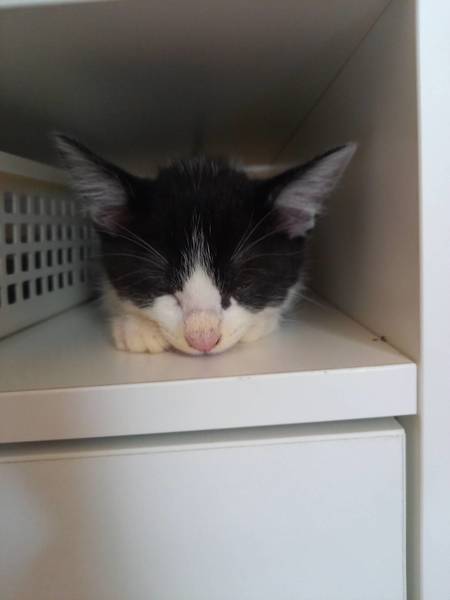 | 特徴(性格など) | ハチワレの男の子目がクリクリで女の子に間違えられちゃうほど可愛い顔をしています。ご飯大好き遊ぶのも大好きな元気いっぱいな子です。ボランティアさんがミルクで育てので人慣れ抜群の男の子です。 | ||