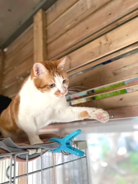 | 特徴(性格など) | まだまだビビりの「モッツァレラ」ちゃん❤ 大好きパウチタイムになると、少し離れた場所で、にゃおにゃおと催促♪ 最初は緊張するけど、可愛い威嚇も一応あるけど、緊張しながらもナデナデさせてくれて、まんざらでもない?! ゆっくり向き合って下されば、きっと甘えっコ間違いなし♪ 現在、ドライフードを24時間の置き餌として栄養補給、水分補給のため一日2回パウチを与えています。 <推定誕生日:5月始め> |