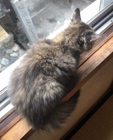 | 特徴(性格など) | 大人しくて、気の小さい子です。 あまり主張する子では無くて、控えめなので いつも隅っこにいるタイプです 長毛で、顔と手足はキジトラ、体はサビが入ってるみたいです。 背中のグラデーションが美しいです。 |