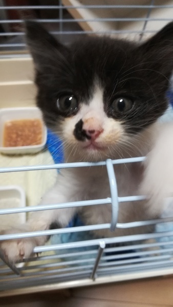 | 里親募集する理由 | 8/14の夜中、外からニャーニャーとはげしく鳴く声がして確認したところ、車のタイヤホイールのすき間にポツンと1ぴきでいました。 雨がふり続いていたため心配で軒下に連れてきましたが、昼すぎても親はあらわれず、近所で聞きこみをしても情報がありません。 交番でも情報はありませんでした。 軒下に置いて様子を見ようと思いましたが、玄関ドアを開けると入ってこようとします。 ひとを怖がらないので、もしかして飼われていたのかもしれません。 軒下でもニャーニャーと鳴きつづけ、このままにすることができず保護しました。 家族がアレルギーで飼うことができないため、大切にしてくださる里親さんを募集します。 |