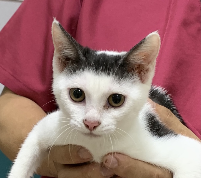 | 特徴(性格など) | 白黒の女の子です。前髪があってとてもかわいいです。 少し怖がり、おてんば、甘えっ子さんです。 |