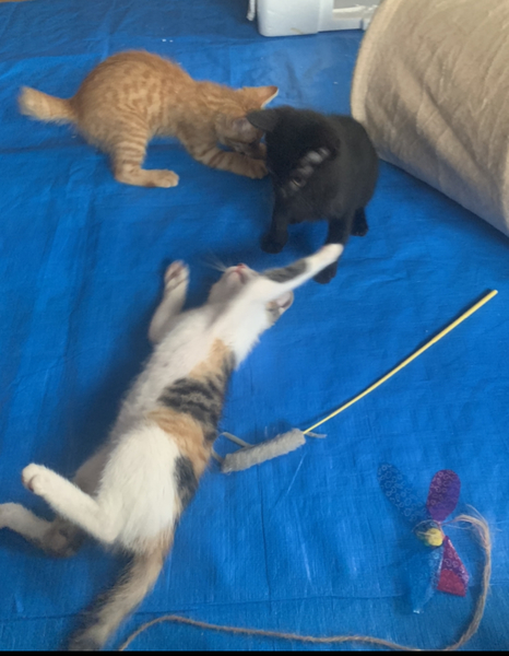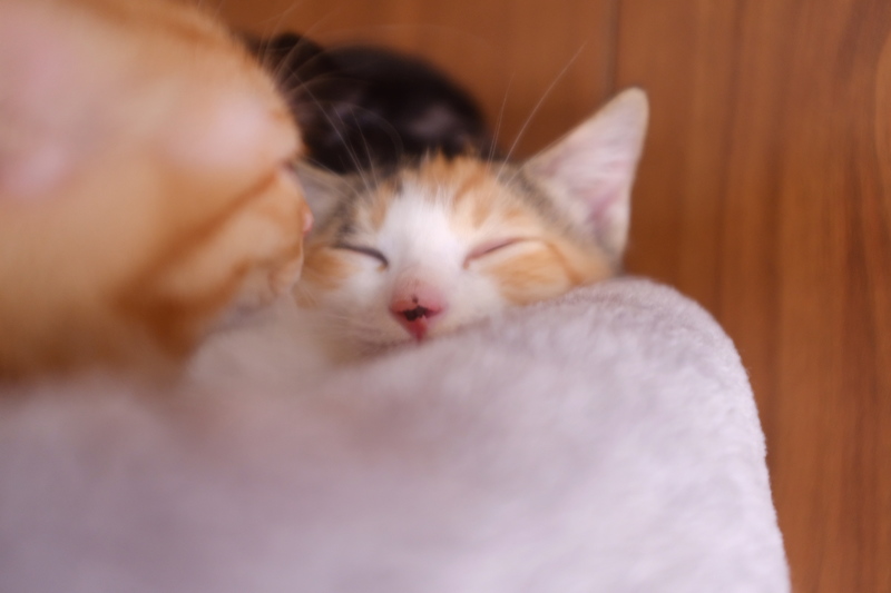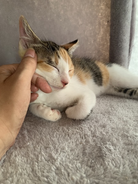 | 特徴(性格など) | 三毛の上品でかわいい女の子です。 4匹きょうだいの紅一点。何をしてもどこか上品で、愛らしいんです。 ピンクのお鼻がキュートな美人さんです。 男の子たちが駆け回るのをキャットたわーの上でうとうとしながら眺めたりする姿も女の子らしいです。 でも、アーンと大きな口を開けてあくびするねぼすけな一面も(写真7枚目)(^-^) なでなでも膝に乗るのも大好きで、かわいくゴロゴロ言ってくれます。 穏やかでおとなしめの性格で、猫が初めての方でも飼いやすいと思います。 最初は緊張しちゃうかもしれませんが、すぐに抱っこできるようになると思います。 チャームポイントは幸運を呼ぶ鍵しっぽと、上手な香箱すわりの時の手元...♡小粒で白くて超絶可愛いです。 1匹でも大丈夫ですが、兄弟で一緒に保護され仲良しなので、2匹など兄弟で一緒に家族に迎えてくださるご家庭を歓迎します。複数飼いしたい場合には兄弟がおすすめです。他の3匹もそれぞれ別に募集ページを作りますので、よろしければぜひご確認ください。 健康状態:良好 エイズ・白血病陰性 駆虫済み(ブロードライン) トイレしつけ済み |