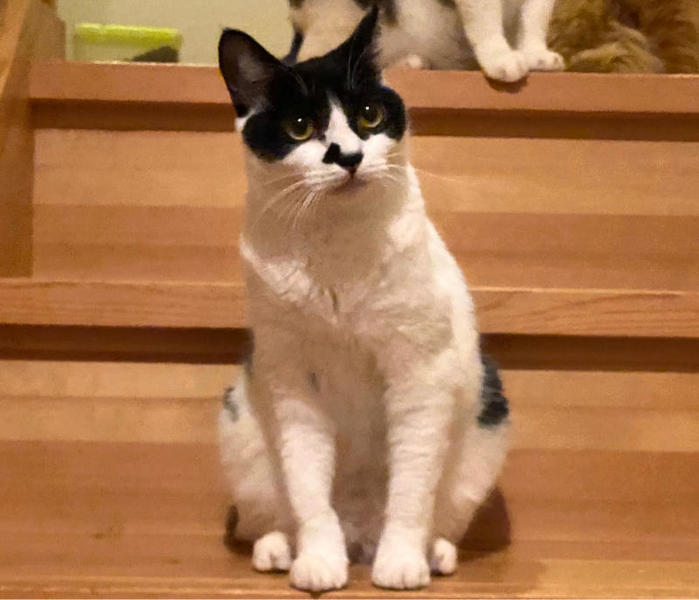 | 特徴(性格など) | ========================= ヤッホー! ボクちんは、おはぎくんだよ おもちゃ大好きで、いつまでもおもちゃで遊んでるよ! ちょっとビビリでヘタレんちょでもあるけど、 こんなボクちんをよろちくお願いしまーす ========================= お鼻のちょび髭といい個性的な柄が特徴的な黒白猫オスくんのご紹介です。 仮名はおはぎくんと言います。 おはぎくんを保護した時の様子などはYouTubeのちゅー猫チャンネルをご覧いただければ幸いです。飢えてガリガリで、便からはビニール袋が出てきました。それほど飢えていたのでした。https://youtu.be/31m2rmtUyhU 保護してからのその後の様子などもYouTubeをご参照ください。 年齢は一歳を過ぎたぐらいです。 オモチャが大好きで、オモチャを与えてあげると喜んで遊んでいます。 遊び終わると大好きなハンモックで寝るのがおはぎくんの至福のひとときらしいです。 人懐っこくて、抱っこもさせてくれるので迎えてくださるご家族はかわいくて堪らないと思います。 他の猫との関係性も特に問題はないのですが、年上のメス猫さんがタイプのようです。 飢えてガリガリになりながらも生き抜いてきた子猫でした。 これからの猫生は幸せしかないと願って、ぜひ、この子のご家族になってくれませんか? もう一歳ですので、フルタイムでお仕事をお持ちのご家庭でも問題なくお留守番できますし、猫飼い初心者の方にもオススメできますので、譲渡会スタッフまでご相談ください。 とてもかわいい子ですので、よろしくお願いします。 おはぎくん、譲渡会でお待ちしてまーす! |