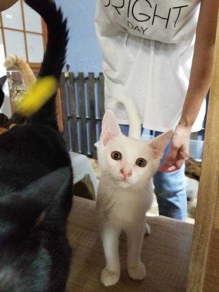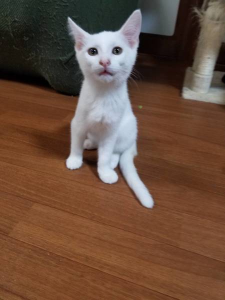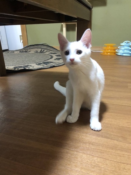 | 特徴(性格など) | 人懐っこい甘えん坊です。 真っ白でピンクの肉球です。 |