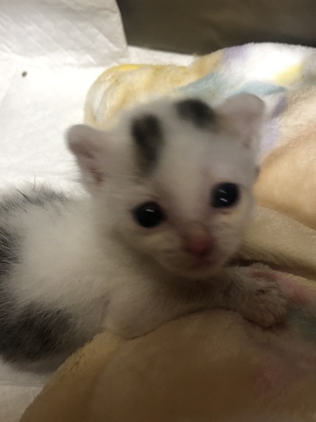 | 特徴(性格など) | 白に黒のぶち柄です。 ミルクを飲み元気です。 離乳食が終わったらの譲渡になります。 |