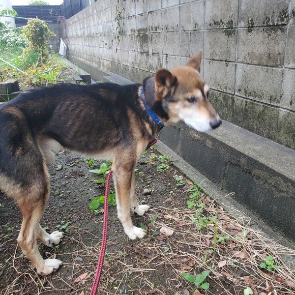 | 特徴(性格など) | お声掛け無く期限延長となっております、あまり若くはないようで見た目の推定10歳〜位?と思われる可愛い男の子ฅ•ﻌ•ฅ 大きめの中型雑種でガリガリに痩せています。アバラ、腰骨がはっきりと浮き出ています( ; ; )適正体重は15キロ位かなと思われる子ですが、痩せ過ぎの現在の推定体重は10キロ前後位でしょうか( ; ; ) 毛はパサパサしていて栄養不良な感じですし可哀想に汚れていてブラッシングやシャンプー、口腔ケアなどをしてもらえていなかった様子( ; ; )歯石もそれなりについています。 綺麗にブラッシングやシャンプーなどケアをしたらもっと美犬君になる事でしょう(^^) お座りやマテなど教わってきていないのか、言ってもキョトン?としていて何とも言えない可愛いお顔です♡ 優しい職員さん方が怖くないよ、今度こそは幸せになれます様にと毎日触れ合いながら、一生懸命にお世話してくださっています。 尻尾を振って静かに寄ってきてくれます。 最近ではお腹を見せたり、撫でて〜と甘えたりするようになったとの事ฅ•ﻌ•ฅ 無理もありませんが急に触ったり、わしゃわしゃぐりぐりと撫でると驚いて噛もうとしたので目が見えにくくなっていたり、耳が聞こえづらくなっているのかもしれません(;_;) ビックリさせたら可哀想なのでゆっくり声掛けしています、手からも食べてくれますし無駄吠えもせず、殆どケージの中に入って寝て過ごしています。大人しく穏やかですが収容されていた他犬(男の子)には威嚇していました(^_^;)相性もあるのでしょうが男の子は嫌いなのかもです。 子供パワーいっぱいの若い子より、落ち着いた子と暮らしていきたい方にピッタリな、シニア犬ならではの魅力があるワンちゃんだと思いますฅ•ﻌ•ฅ 職員さんが連れ出してくれるお散歩は嬉しそう♪楽しそうでしっかり片足を上げて排尿しています(^^)痩せていますしリードの引きの強さは問題無く制御出来ます。 でも急な走り出しや後退りからの首輪抜け・胴輪抜けなども想定し、どんな子であっても油断は禁物で脱走、逃走には充分な配慮と注意が必要ですm(_ _)m この子のペースや体力をみながら寄り添う時間を取ることの出来るご家庭を希望しておりますm(_ _)m ⭐️必ず室内飼育で、譲渡後速やかに病院受診、健康診断、(血液検査、尿便検査、ノミダニ・フィラリア予防やシャンプー等)混合ワクチン接種をする事が可能な、なるべくお留守番が少ない、沢山優しくスキンシップやコミュニケーションで触れ合っていただけるご家庭。 ⭐️狂犬病予防接種、フィラリア予防や混合ワクチン実績の有無は不明です。 フィラリア陽性の可能性も有り得る事となります(>_<) ⭐️室内でのトイレトレーニングも1からとなります。 未去勢で片足を上げて排尿します。 何かと手がかかり大変ですが(マナーベルトやL字型のトイレ、ペットシートを用意など)覚悟と理解で受け入れて下さる方。 ⭐️出来れば中型〜大型犬の飼育経験があり愛情を持って接することが出来る方、この子の体力を見つつ朝晩のお散歩や運動、コミュニケーションに充分時間をあてられる方、何卒宜しくお願い致します。 ⭐️(今のところ殆ど吠えませんが)吠えても大丈夫なご家庭。 以上の点を踏まえ、この子の置かれている状況、傷ついているであろう心をご理解の上、全て受け入れ、寄り添いながら愛情を注いでくださるご家庭で可愛がっていただきたいと願っております。 保健所収容された全ての子達は身勝手な人間による被害者であり、何も悪くありません( ; ; ) 家族の一員として生涯大切にしてくださる優しいご家庭とのご縁が結ばれ、お散歩から帰っても嫌な檻の中では無い、家族の皆さんとずっと一緒に居られるお家、これからの寒さも安心して快適に過ごせるお家が見つかります様に。 首輪をしていましたし今まで人間を信じ、人間と共に生きてきた筈です。 1日も早く温かな愛情を目一杯注がれながら、元気に幸せに生きてほしいです。人間より遙かに短い生涯です。 冷たく硬いコンクリートの上、狭い檻の中でひたすら優しい素敵な里親様を待ち続けています。 悲しい事にこの世の中、人間に飼われないと犬は生きていく事が出来ません。 捨てる飼い主、探さない飼い主、医療にかけない飼い主、虐待する飼い主…飼い主を選ぶ事も出来ません。 家族を必要としています。 最期は大切な家族の一員として、この子の全てを受け入れて下さる、優しい素敵な里親様の元で穏やかな余生を過ごしてほしいです。残るこの子の犬生を生涯大切に可愛がって下さる優しい素敵な里親様、どうかお願い致しますm(_ _)m もうこれ以上悲しく辛い目に遭わせたくありません。 本当の愛情、温もりを知ってほしい、辛かった分、寂しかった分、今後はのびのびと幸せいっぱいに愛し愛されて、生きてほしいと願っております。 家族の一員に迎え、愛情溢れるご家庭で一緒に暮らして頂けませんか。 何卒宜しくお願い致します(๑•ᴗ•