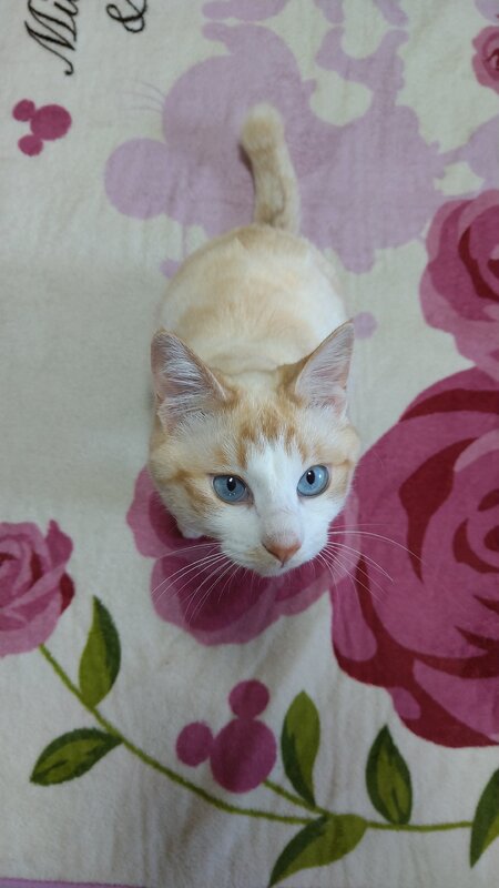 | 特徴(性格など) | 頭、背中、しっぽが薄い茶色です。 足、お腹は真っ白です。 しっぽの先に奇形がありますが 見た目では全くわかりません。 成長するにあたり、白からクリームっぽくなってきました。 瞳がブルーのイケニャンです。 人懐っこい性格です。 抱っこされるのは嫌いですが 自分から行くのは好きです。 背中や肩に乗るのが好きです。 我が家の犬と仲良くお散歩出来ます。 寂しがりやなのか、よく鳴きます。 分離不安症? 布団に粗相をしがちですが 最近はしなくなりました。 詳しくは私のプロフィールより ブログを確認して頂きたいです。 2021年 9月24日→保護 9月27日→回虫駆除 9月28日→猫風邪治療(計3回) 9月30日→1.92キロ 10月1日→猫白血病陽性 (猫エイズ陰性) 10月30日→去勢手術完了 体重2.6キロ 血液検査の結果貧血有り 2022年 1月4日→回虫駆除(2回目) 3月14日→体重3.24キロ 回虫検査→完治 三種混合ワクチン1回目 5月27日→三種混合ワクチン2回目完了 体重4.02キロ |
