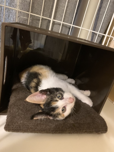| 特徴(性格など) | 三毛猫の女の子です。 保護したばかりの時は、野良猫の為怯えていて、シャーシャーでした。 3日もすれば、撫でればゴロゴロ言うようになり、無邪気にずっと遊んでます。 抱っこも出来ます。 とにかく可愛いです。 |