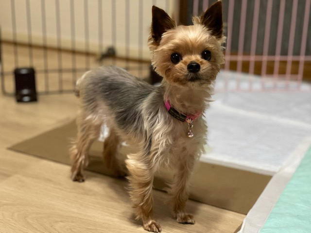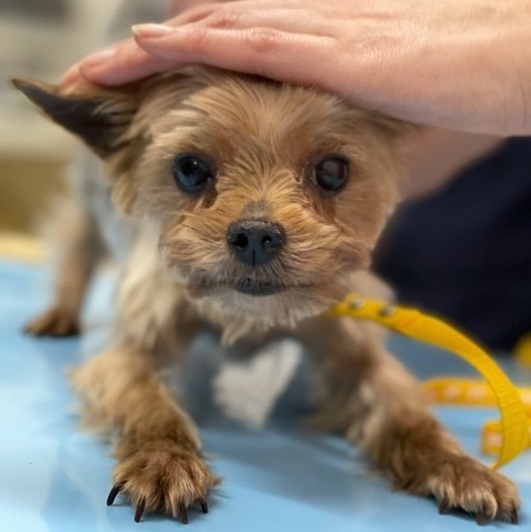 | 特徴(性格など) | ヨークシャーテリアの女のコ。体重は2.4kgです。仮の名前を「ステラ」と名付けました。 繁殖場から保護され、家庭生活にようやく慣れてきたところです。 まだまだ家庭で暮らしてきたコとは違って、人に甘えたり寄り添ったりができません。 同じ目線でそろっと近付くと逃げずに触らせてくれますが、いきなりの手や、抱っこは苦手です。 でも、人が寝転ぶと、顔のそばにまで寄ってきます。 お口が出ることはありませんが、顔周りを触られるのを嫌がります。 抱っこはできないことはないですが、しっかりホールドしないと、ぴょん!っといきなり飛び逃げるので、気をつけなければいけません。 保護後に右前脚を骨折して手術をしました。元繁殖犬で出産経験もあるため、骨が脆いようです。なるべく段差等がない生活を送らせる必要があります。 食事にはムラがあります。適正量でも食べ残すことがあります。フードの好き嫌いもありそうです。 トイレシートの認識はあります。でもたまに失敗もします。 室内にはだいぶ慣れましたが、環境が変わればまたスタートからになると思います。外が怖いので、お散歩はまだまだできません。 他犬に攻撃性はありません。 慣れてくると、インターホンや来客に吠えます。 しつこくはないですが、結構なボリュームなので、近隣に配慮が必要になると思います。 ゆっくりと時間をかけて絆を作るタイプです。 フィラリアは陰性です。他に健康上の問題はありません。 現在は、一時預かりボランティア様宅で新しい家族を待っています。 現在の様子は、 http://26town.blog137.fc2.com/ をご覧下さい。 |