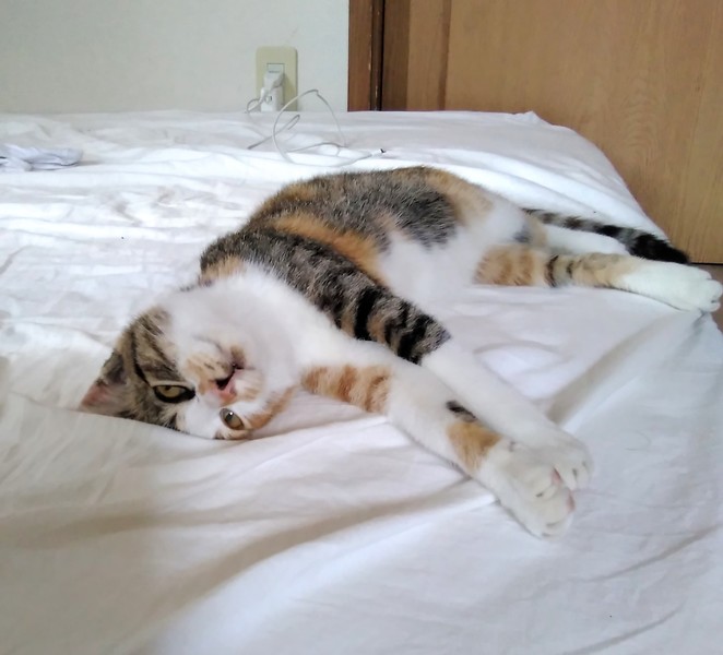 | 特徴(性格など) | 近所の野良猫ちゃんです。直ぐになついて家に入れた日からこんな感じでリラックスしております。とても人なつっこい性格です。天真爛漫な性格です。 | ||