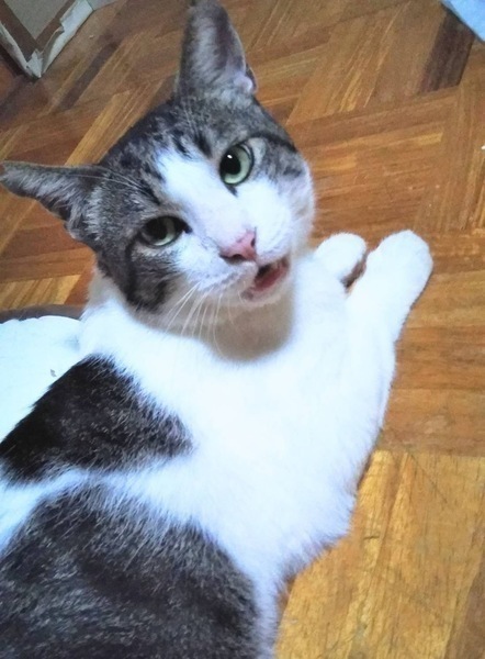 | 特徴(性格など) | キジ白、キャンドルテール レボリューション2回済 エイズ・白血病検査=近日予定中(結果は後日追記いたします) トイレ完璧です 家猫修行(3ヶ月目)先住猫先輩と喧嘩なし。 外猫生活を思い出して、時々鳴くことがありますがお腹なでなでしたり甘えさせてあげれば すぐに泣き止みます。 得意技すりすり。 なでなでも大好きで、ゴロゴロ言いながらお腹も触らせてくれます。 |