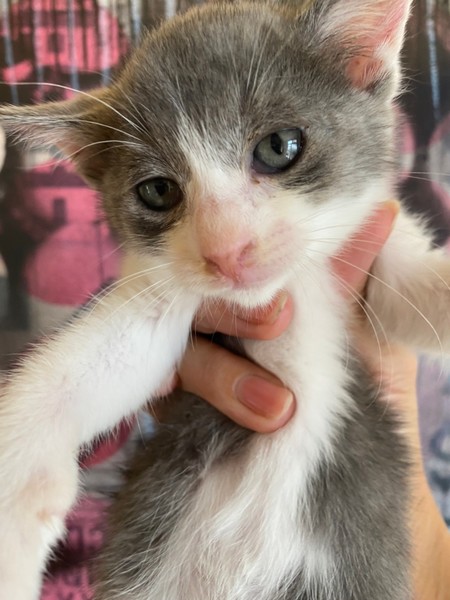 | 特徴(性格など) | 自転車のかごに捨てられていたところを保護されました。おっとりしていて天然な子ですww とても甘えたで、眠たくなると膝に乗ってきます♪ 2か月くらいでまだまだ小さいですが、元気に成長しています。 |