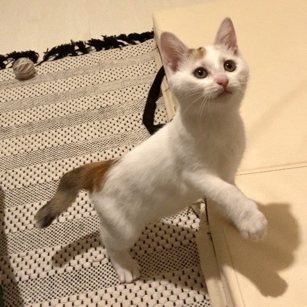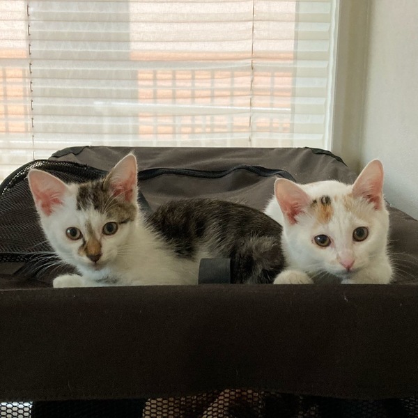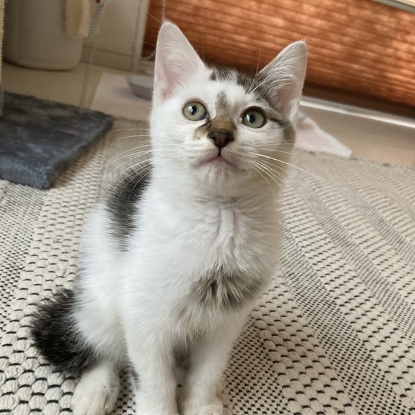 | 特徴(性格など) | 白✖︎背中グレー 男の子 好奇心旺盛でオモチャ大好き 白✖︎尻尾茶色 女の子 少しこわがりさんですがオモチャ大好き |