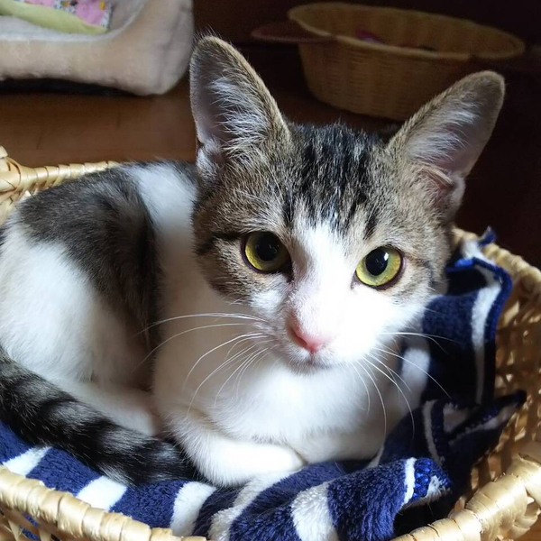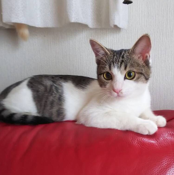 | 里親募集する理由 | 交通量の多い道路に面した魚屋の前でお腹を空かせてウロウロしているところを発見。すぐ横を車やバイクが通り危険なため保護しました。 | ||
