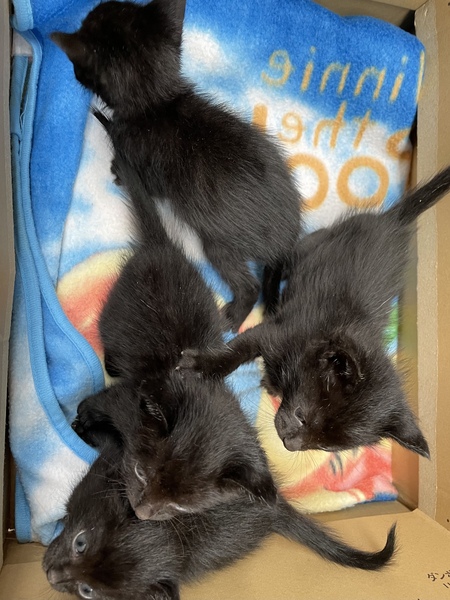 | 特徴(性格など) | 推定ですが生後約1ヶ月程度かと思われます。 ウエットフードを食べましたので、ある程度離乳はできているのかと思います。 排泄も自力でできているようです。 まだ性別はわかりませんが、4匹とも元気に歩き回っています。 |