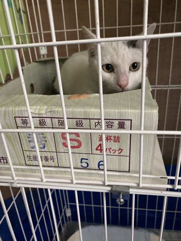 | 特徴(性格など) | 白猫で、尻尾のみ黒色でとてもおしゃれです。 耳のところにも黒い模様があります。 個体としては小柄で可愛いです。 保護して間もないので性格はあまり分からないですが、シャーと言われた事はありませんので、わりとおっとりとしてると思います! 甘えん坊さんだったら嬉しいな!と思います! |