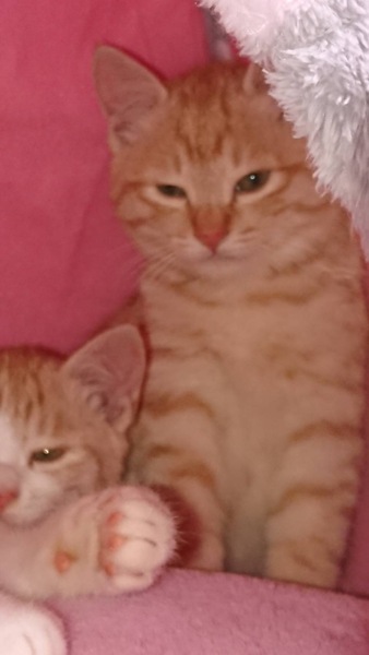 | 特徴(性格など) | 仮名:大河ちゃん(茶トラ猫・短尻尾) 初期医療:済み ウイルス検査:陰性 3種混合ワクチン接種:済み 検便・ノミダニ駆除薬:済み 11月6日:1.1kg とても優しい色合いの薄茶トラ仔猫で、兄弟で保護しています。 11月6日に推定1.5ヶ月で保護しました。 健康状態もよく、食欲もありよくフードを食べています。 シャンプーしましたが、とても毛並みが良いです。 1匹でも可能ですが、兄弟一緒かお留守番の少ないお家を希望します。 |