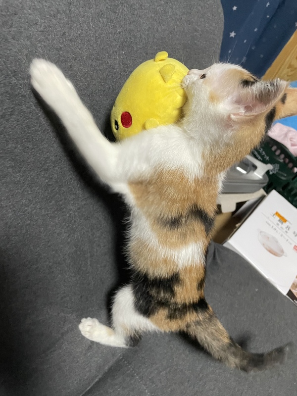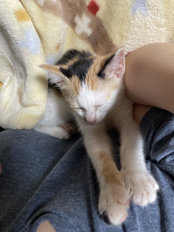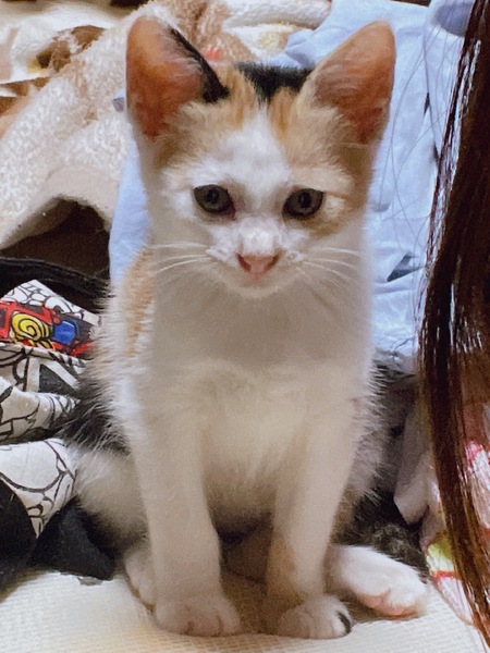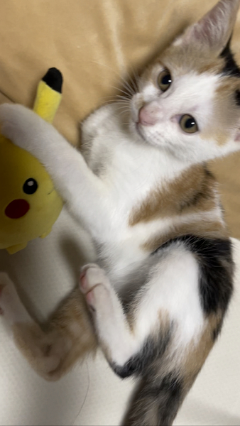 | 特徴(性格など) | 三毛猫 活発で好奇心旺盛な子猫です。 甘えん坊でとても人懐っこい性格です。 |