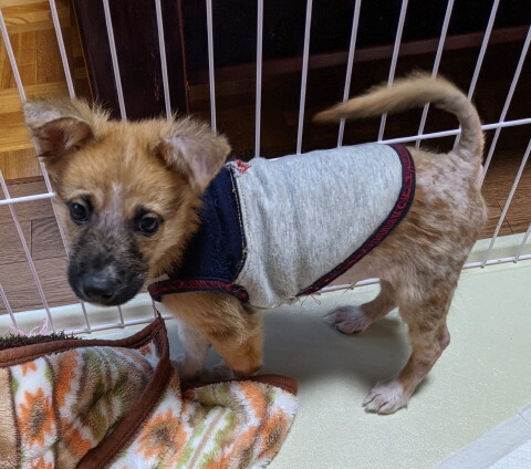 | 里親募集する理由 | 保健所に生後40日位で1匹で保護された野犬の子供で兄妹、親もどんな子か不明です。 1回目の混合ワクチンその他駆虫、健康診断も済んでいます。 |