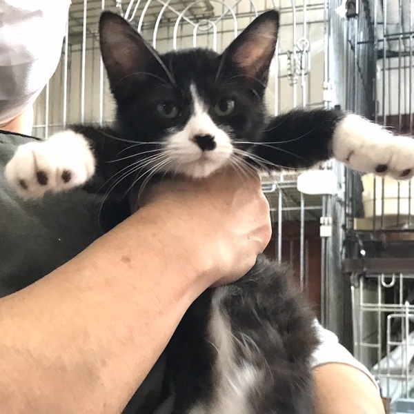 | 特徴(性格など) | ◆ラピュタちゃん 活発で人慣れした白黒ハチワレ女子 ●月齢の小さな子猫は、以下の条件についてご了承の上で応募をご検討下さい。 ◆高齢者のみのご家族からの子猫のお申し込みはお断りさせて頂きます。 ◆お留守番の少ないご家庭を希望します。 ◆小さなお子様のいるご家庭は状況によりお断りする場合がございます。 ○沖縄県、中城の海岸で、3兄妹で保護されました。 ○推定月齢3ヶ月くらい(2021年12月上旬時点)の白黒ハチワレ女子です。 ○チャームポイントはちょび髭風のお口の上の模様、そしてふわふわの毛です。 ○尻尾は長くて真っ直ぐです。 ○同じく里親募集中の「ナウシカ」「トトロ」とは兄妹です ○遊びが大好きでとても活発です。 ○人間にもとても慣れています。 ○元気にすくすく育っています。 ○まだ小さな仔猫のため、お留守番の少ないおうちをお待ちしております。 ★ワクチン1回済み。 ★猫エイズ、猫白血病とも陰性。 ★不妊手術は、成長と体調をみて実施予定です。 ○12/12(日)開催の譲渡会に参加予定! 以下の要項をお読みいただき、ぜひ会いに来てください♪ ☆★☆★☆★☆★☆★☆★☆★☆★☆★☆★☆ ~12月12日(日)新山下にて譲渡会開催!~ ◎場所・・「島忠ホームズ 新山下店」 神奈川県横浜市中区新山下2丁目12−34 JR根岸線「桜木町駅」より横浜市営バス(8.26.58.148系統)乗車「貯木場前」より徒歩約5分 みなとみらい線「元町・中華街駅」より徒歩約15分 ◎日程・・12月12日(日)(雨天決行) ◎時間・・12時から15時 【14時30分受付終了】 (会場に利用可能な無料駐車場がございます。そちらをご利用くださいませ。) 今回はコロナ対策のため、制限を設けての開催となります。 *3密対策のため、当日10時より全時間分の整理券を配布いたします。整理券枚数には限りがございますので、上限に達した場合はご入場できません。 *各回15分 *各回先着3組様 *参加の際は、マスクの着用、アルコール消毒のご協力をお願いいたします。 *当日は検温の上、体温が37度以上の方はご参加いただけません。 *混雑状況により、中止させていただく場合がございます。 ※参加予定の犬猫は体調により参加できない場合があります。ご了承ください。 ☆★☆★☆★☆★☆★☆★☆★☆★☆★☆★☆ |