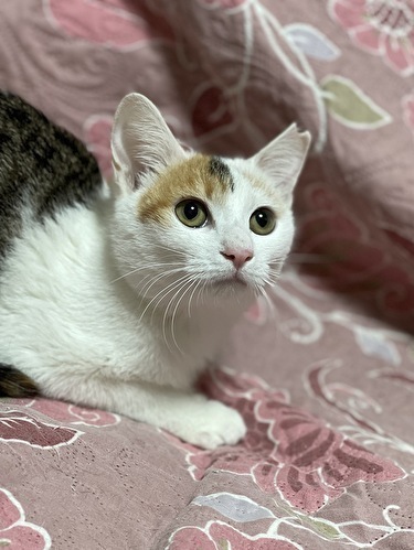 | 特徴(性格など) | 【仮名】りんかちゃん 【性格】とても物静かなかりんちゃん♪ 舞妓さんのようなしとやかにゃんこです(*'▽') いつもはしとやかなんですがおやつのちゅーるは・・・ 猫が変わっちゃいます(笑) ここぞとばかりにくれくれにゃんこに変身です('ω') 人馴れはバッチリなのでご安心を♪ 夜は人の頭に頭を付けて寝ています♪ ただ抱っこは好きではないようなので 現在、特訓中です(笑) 面倒見のよいお姉ちゃんな一面もあり 子猫が美味しいのか?ベロンベロン毛づくろいしてます(笑) 立派な頼れる保育士さんです♪ 一緒に暮らしている同世代の猫とのご縁を望んでいますが 先住猫さんがいるおうちでも上手に接することが出来ると思います。 1匹譲渡可 |