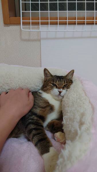 | 特徴(性格など) | まだまだ急な人の動きなどにはビクビクしてしまいますが、撫でられるのは好きでゴロゴロ喉を鳴らします。 少しずつ自分から寄り添ってくるようにもなり、おもちゃでは全力で遊びます。 キジ白ちゃんのペースでのんびり家族になって下さる里親さんを募集しています。 短めあんよでウサギみたいなしっぽと動き、眼力の強い美人さんです。 |