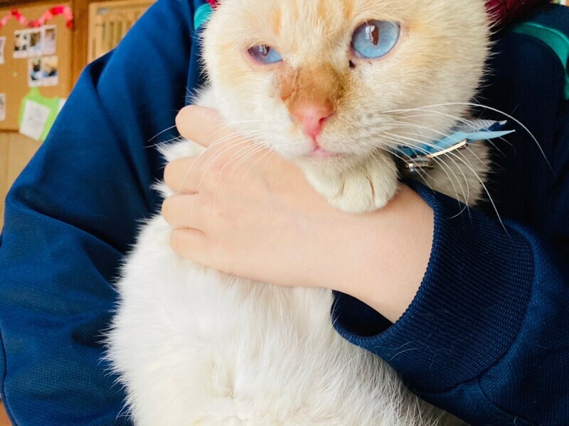 | 特徴(性格など) | 吸い込まれそうにきれいな青い目がとっても印象的なそうくん。性格も甘えたで人懐こくて、すごくかわいいです(^^) 単身者の方、シニアの方からもご応募お待ちしています。そうくんをよろしくお願いします。 ・去勢手術済み ・ノミダニ便虫駆除済 ・エイズ(−)白血病(−) ・3種混合ワクチン接種済 |