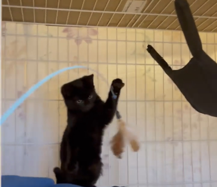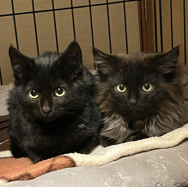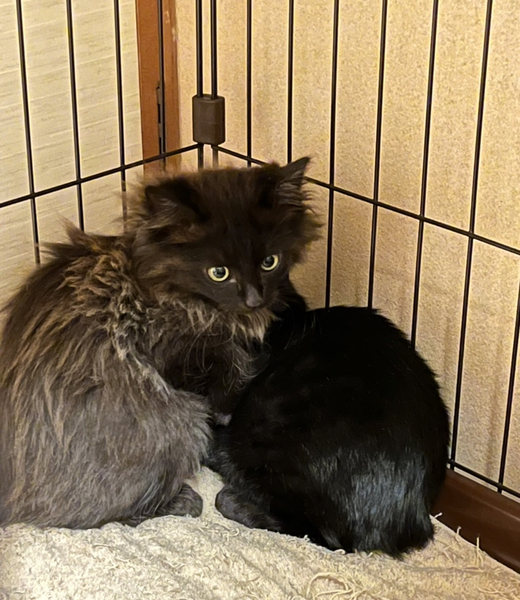 | 特徴(性格など) | ノミダニ駆除済 便検査済 エイズ、白血病陰性 中毛長しっぽ黒仔猫です。 保護時は慣れてなく、かなり怖がってましたが、最近はご飯もよく食べおもちゃで遊びます☺️ |