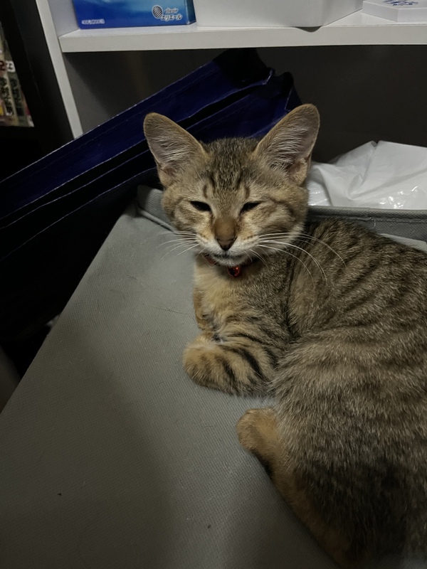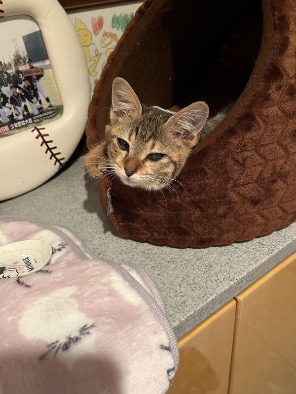 | 里親募集する理由 | 通勤中にメヤニで目が塞がった子猫がいなので保護いたしました。 保護した時は目が腫れていて大丈夫かな?と思いましたが現在はだんだん良くなってきています。 とてもマイペースで元気な子猫なのでぜひ一度会ってみていただきたいです。 |