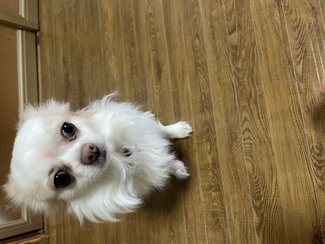 | 特徴(性格など) | 初対面の人には最初は吠えますが人懐こい為そのうちに慣れて甘えてます。 とても甘えん坊で、隙あらば人の膝に乗って寝ています。 ボール投げで遊ぶのが大好きで遊んで欲しい時には自分でボールを持ってきます。 撫でて欲しい時にはお腹を天井に向けて構ってアピールをします。 ゲージに入れずに飼育しており、おしっこはシートに上手に済ませます。 昼間はひとりで長時間お留守番をし、夜に眠る時は一緒に寝室の布団の中で眠ります。 お散歩が大好きです。 来客があると吠えながら玄関へ走って行ってしまいます。 |