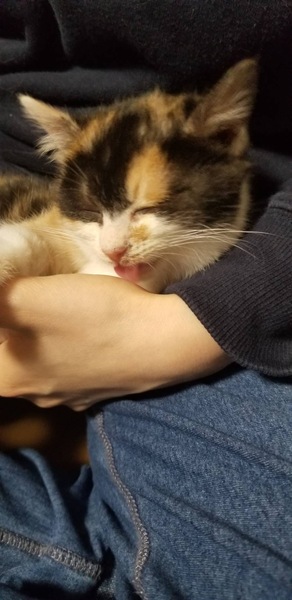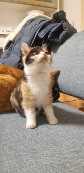 | 特徴(性格など) | 三毛猫の女の子で、人見知りも猫見知りもしない、懐っこい子猫です。 | ||