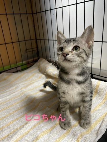 | 特徴(性格など) | ワクチン済み、駆虫済み、ウイルス検査白血病、エイズ共に陰性 ※現在募集中なのはメディオちゃんとカリーナちゃんです キジ柄3匹兄妹とサバ柄3匹の兄妹です。 赤ちゃんの頃から一緒にいるので仲良くしています。 人馴れは全く問題なく初心者の方でも飼いやすい子たちです。 やんちゃ坊主とおてんば娘の集団ですが、人間の生活に合わせられる子たちです。 爪切りは問題なくさせてくれます。 ピコちゃん、ボニータくん ルルちゃん、グランデくんは正式譲渡になりました。 |