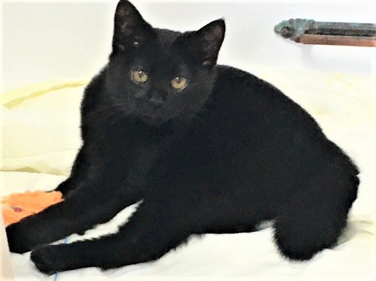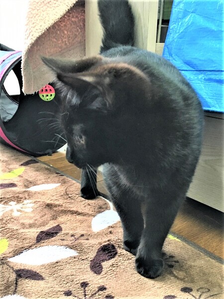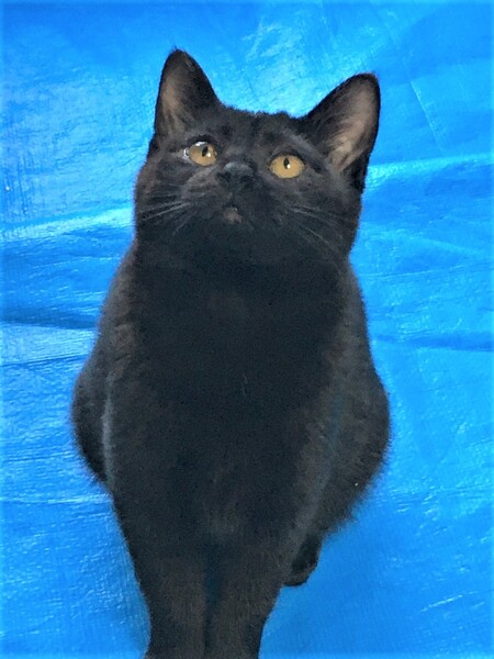 | 特徴(性格など) | 黒猫の女の子です。 とても人懐っこく、保護部屋に入るとすぐに寄ってきます。 撫でるのも、膝に乗るのも大好きで、玩具や兄弟とも良く遊び 性格は1000%良いです 2月10日時点で1.8㎏です。 |