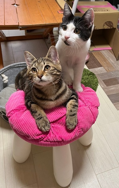 | 特徴(性格など) | キジトラ トラジ 白黒 うしまる 好奇心旺盛で 遊び盛りなお年頃です☆ |