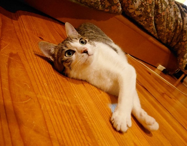 | 里親募集する理由 | ある日突然、親猫と一緒に庭に来るようになった子です。寒くなって来たので親子で保護をしました。 | ||