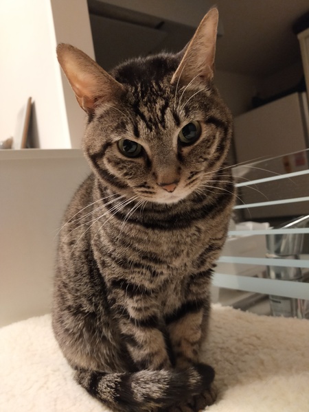 | 特徴(性格など) | 小柄なクロキジの女のコです 臆病で少し控えめな一面もありますが猫らしくツンデレで甘えてくれます 抱っこはあまり好きではないようです メス猫さんとの相性が良くないため、落ち着いたオス猫さんだとご一緒できるかなと思います エイズ、白血病陰性です 健康状態も問題なく元気です |