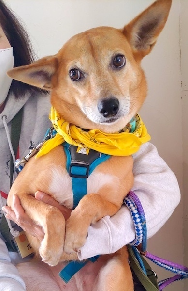 | 特徴(性格など) | MIXの『AKIHA(アキハ)』です。 (ちばわんHP掲載番号No.4370)←申込時は犬の名前とこの番号を記載し、下記内容をよくお読みの上、必ずちばわんHPからお願いします。 ※「生まれた年月日」は推定です。生育環境によって誤差が生じることがあります。 【年齢】推定6歳 【毛色】茶 【体重】14.5kg 【状態】ワクチン接種済、検便(-)、フィラリア(-)、マイクロチップ装着済、狂犬病予防接種済、ノミ・ダニ駆除済 【人馴】怖がりです 【性格・その他】大きな耳とクリクリした目が可愛い女の子です。 とても怖がりで、人に馴れるまで時間がかかります。自分から寄ってくることはありませんが、人への恐怖心を克服できるよう抱っこ練習を始めています。預かり母の姿が見えないと鼻泣きをする事もあり、少し淋しがりやの面もあるようです。 普段は室内フリーで過ごしています。「ハウス」の掛け声で自ら部屋を移動することができます。 毎日夜にお散歩練習を行い、自宅周辺のみですが歩くことができるようになりました。まだ外が怖くリードに抵抗もありますが、少しずつ経験値を上げています。 ブラッシングや爪切り、歯磨き、シャンプー、ドライヤーなどのお手入れは問題なくできます。 別の預かり犬がそばに寄ってきても気にしませんし、むしろ構って欲しいような素振りを見せますので、先住犬がいるほうが慣れるのは早いと思います。 留守番時のイタズラはありません。おもちゃのロープを噛んだりすることは好きですが、噛み切ったロープを食べることがあるので注意が必要です。 食事は朝・夕の2回で、ドライフードやウェットフード、手作り食など何でも食べます。 トイレは、室内のトイレシートとお散歩時に済ませています。 身体能力がとても高いので、脱走・逸走には細心の注意が必要です。こちらで指定するハーネスと、飼育環境での厳重な脱走防止対策にご対応いただける関東近郊のご家庭を希望しています。 引き続き完全室内飼育で、定期的なワクチン接種やフィラリア予防などの健康管理を必ずお約束していただけるご家庭で、あせらずに時間をかけてAKIHAと向き合ってくださり、終生家族の一員として大切にしてくださる方からのお問い合わせをお待ちしております。 大変申し訳ありませんが、高齢の方のみのご家庭からのお申込みにつきましてはお断りさせて頂きますので予めご了承下さい。 【預かり場所】神奈川県藤沢市 【預かり日記】Legacy of Merconi https://ameblo.jp/merconi/ 【申込】ちばわんの保護犬『AKIHA(アキハ)』への申し込みはhttp://chibawan.net/contactform_dogからお願いします。 |