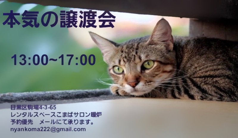 | その他(譲渡条件など) | ペットとしてではなく、生涯家族として猫を迎えて下さる方への譲渡となります。 ◆猫さんたちとのお見合について◆ 「ねこけん譲渡会」で気になる猫さんと会えます♪ 原則ねこけん譲渡会でのお見合いにて正式なお申込みをお願いしております。 譲渡会には家族を待っている猫さん達がたくさん参加します♪ 募集サイトに掲載のない猫さんも参加します。 家族としてお迎えいただく猫さんです。 実際に会って、よ~く考えてから決めて下さい! 譲渡会等イベント開催日程・詳細は、イベント一覧よりご確認ください。 https://satoya-boshu.net/event/?@button_name@=search&Event_MemberID=1288 ※掲載中の猫さんであっても、当日の体調などにより譲渡会を欠席することがあります。 ◆必ずお守り頂く事◆ ①終生飼養 ②完全室内飼養 ③年1回のご報告 ④ペット飼育可能な物件にお住まいであること ただし、以下の該当の方は、譲渡出来ない場合がございます。 ※学生、安定的な収入のない方 ※60歳以上の方は、成猫さんを家族に迎え入れることが出来ます。 里親様のご年齢に応じた成猫の譲渡となりますのでご相談ください。 ◆譲渡費用について◆ 不妊去勢手術・医療費の一部負担をお願いしております。 お届けエリアによっては往復高速料金(実費)を別途ご負担いただく場合がございます。 なお、交通費に関しましては正式譲渡に至らない場合であってもご返却できませんので予めご了承下さい。 ・ご希望の猫さんと家族になるまでの流れ ・譲渡時にかかる一部ご負担金などの詳細 ・譲渡契約書のサンプル等 下記URLに掲載しておりますのでご確認ください。 https://nekoken.jp/jotokai/joto-nagare/ https://nekoken.jp/jotokai/joutokibou/ ◆引き渡し方法◆ 必ずご自宅まで猫さんをお届けさせていただきます。 1週間程度のトライアル後、正式譲渡となります。 ◆お届け可能エリアについて◆ 応募可能県内であっても、遠方の場合アフターフォローの関係上お断りさせていただくことがございます。 ご心配な際は、前もって市区町村名や最寄り駅等をメールにてお問い合わせいただけますと幸いです。 お手数をおかけいたしますが、何卒ご了承くださいますようお願いいします。 [連絡先] ご質問等ございましたらお気軽にお問い合わせください。 NPO法人ねこけん東京本部 https://nekoken.jp/inquiry/ nekoken@cat.email.ne.jp 担当:溝上(預) [ホームページ] https://nekoken.jp [Instagram] https://www.instagram.com/nekoken2222/ [ブログ・ボラ日記・YouTubeなど] https://linktr.ee/nekoken フォロー・チャンネル登録よろしくお願いします! |