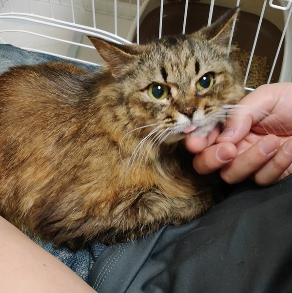 | 特徴(性格など) | ペロちゃん♀ 年齢不詳(成猫)/長毛/オレンジがかったキジ 去勢避妊手術済ノミ駆除薬一回投与 猫白血病・猫エイズウイルス検査済陰性 小柄でおとなしい性格の子です よく舌を出しています 静かでほとんど鳴きません 人間や他の猫からのスキンシップやブラッシングも嫌がりません 歯が一部抜けていますが食欲旺盛でドライフードをよく食べます 綺麗好きで猫用トイレで排泄します おとなしくてお留守番上手です |